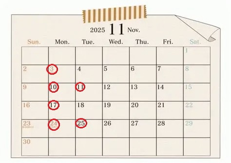 11月のお休みのご案内
